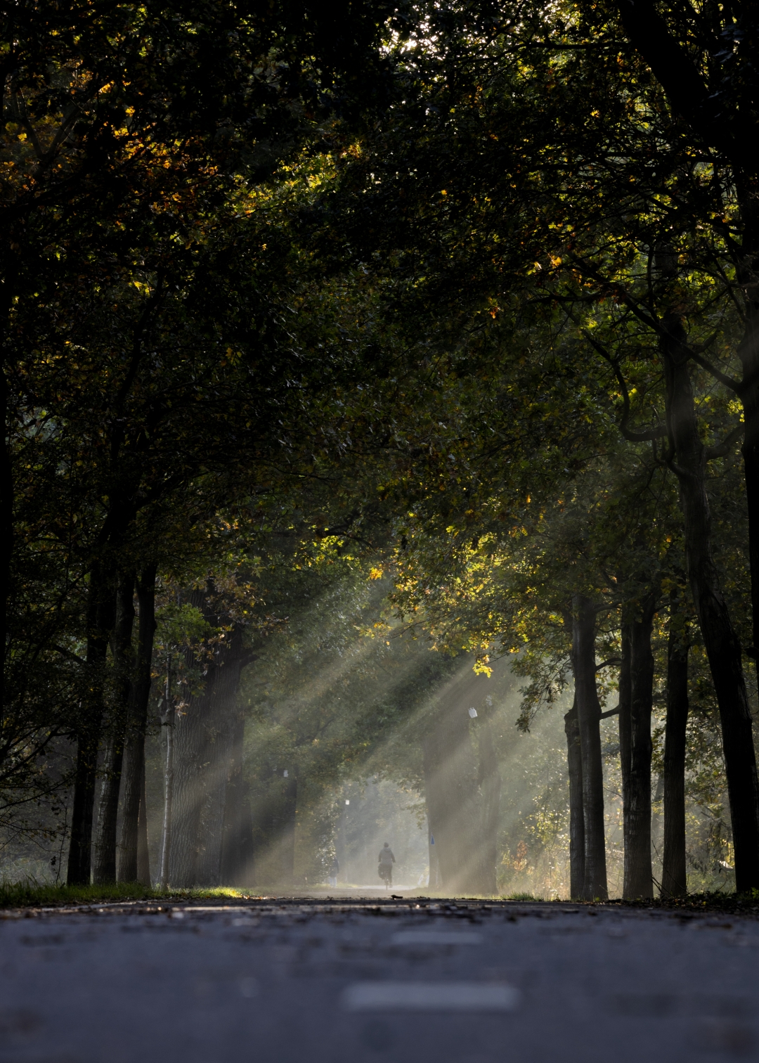 Mist clings to the moss, branches filter soft light, paths lead nowhere in particular. And sometimes you can see someone on their bike, cycling in between the gentle green giants.